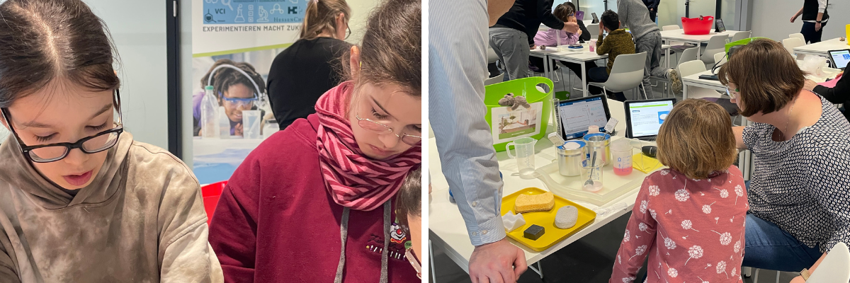 Begrüßt wurden die Familien von Dr. Thomas Eberle (Merck) und Marion Wagener (two4science), die auch die Einführung übernahm. Danach hieß es: ausprobieren und einfach machen.